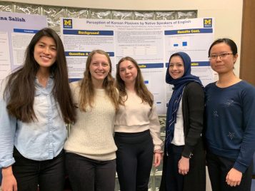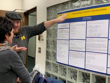 Undergraduate students in the fall term's two capstone Linguistics classes--Professor Pam Beddor's Speech Perception seminar and Professor Sally Thomason's Montana Salish seminar--showcased their projects at the biennial Capstone Poster Session, held in Lorch Hall on December 9th.