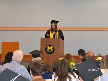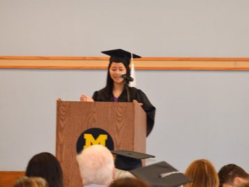 Opening remarks were followed by student speakers Grace Brown and Kim-Van Pham, who offered their perspectives and reflections on studying Linguistics as well as their time at U-M.