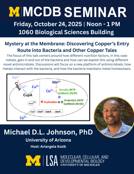 MDCB Seminar> Mystery at the Membrane: Discovering Copper’s Entry Route into Bacteria and Other Copper Tales