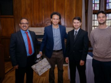 They wanted to do something special for their two mentors to thank them for all the help, guidance, and advice they all recieved over the past two years. So in the middle of the ceremony, Ibrahim gave a speech thanking Dr. Hannouchi and Dr. Alhawary, and presented the mentors with special gifts.