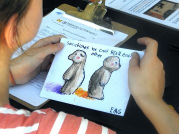 With the Arts Council England's support, We Bear traveled to the US and was showcased at the hugely popular Ann Arbor Summer Art Fair. The University of Michigan Prison Creative Arts Project (PCAP), partnered with the project from conception and is now collaborating as co-curator for the art fair exhibit. Fair-goers joined them, Thursday - Saturday, to experience the entire collection and left their mark in the ongoing collaborative public art installation at the exhibit’s activity tent. There were also engaging live events just down the street, thanks to support from The Guild of Artists and Artisans.