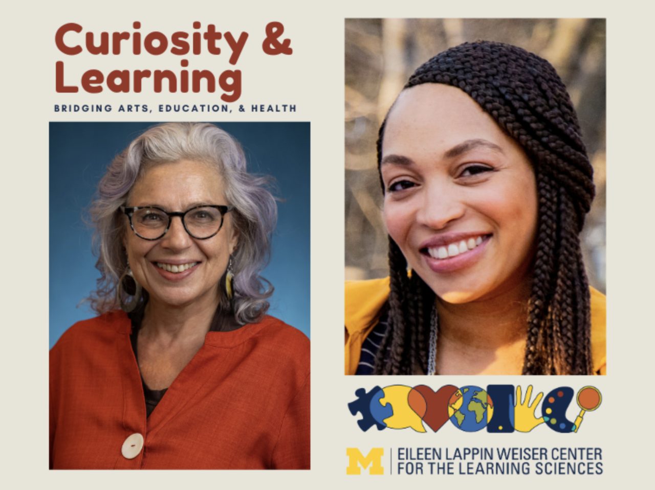 Deborah Gordon-Gurfinkel addresses the learning and mental health needs of youth in Washtenaw County through creative expression and evidence-based youth engagement practices, while Francesca A. Williamson presents Learning with Black Children and Childhoods in Health Care for this engaging Lunch and Learn event hosted by the Eileen Lappin Weiser Center for the Learning Sciences.