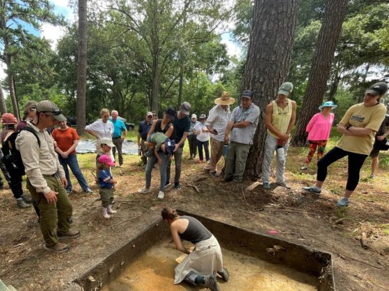 Photo: Griffin fellow Hannah Hoover and her student research assistants host an annual public archaeology day for members of the community to tour the colonial-era Indigenous town site where they are conducting archaeological research. Photo courtesy of Hannah Hoover.