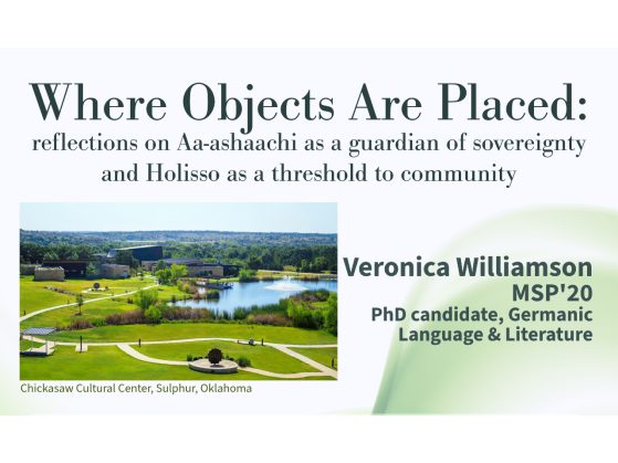 On Friday, September 12, Veronica Williamson, PhD candidate in Germanic Language & Literature at the University of Michigan, will speak on “Where Objects are Placed” as part of the Museum Studies Program’s Museums at Noon lecture series. 12 to 1 p.m., Hatcher Library Gallery Lab, Room 100H. The event is free and open to the public.