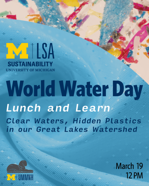 Join us for a lunch-and-learn seminar exploring the research on microplastics across Michigan’s diverse waterways—from the Great Lakes to rivers, streams, and inland lakes. A U-M scientist who has studied this system with her lab since 2013 will share how these tiny pollutants challenge our freshwater resources, looking upstream for potential solutions. The seminar will highlight the collective efforts of the multidisciplinary U-M team of biologists, chemists, modelers, and engineers who are unraveling the origins, movement, and effects of microplastics across the Great Lakes Basin and beyond.
