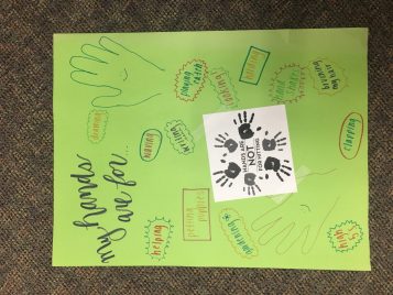 "On Monday, I represented the BAWC at Family Fun FARM (food, agriculture, and resources in motion) event at the local Boys and Girls club. We assumed it would be a farm theme, so we had the kids plant seeds. I designed the little stickers that went on the cup that they planted the seeds in! They had several organizations there, including a group teaching students about STEM and doing science experiments! Today, I gave my first solo presentation to 3-5 year olds, which was terrifying! We are also starting to present once a week to the Boys and Girls club in Pinconning. Today, our message is hands are not for hitting and we are going to play wheel of fortune and do hand tracing posters! Next week I will start giving two presentations a week at the juvenile center in Bay City, which I have designed a curriculum for. It’s kind of terrifying but so much fun!"